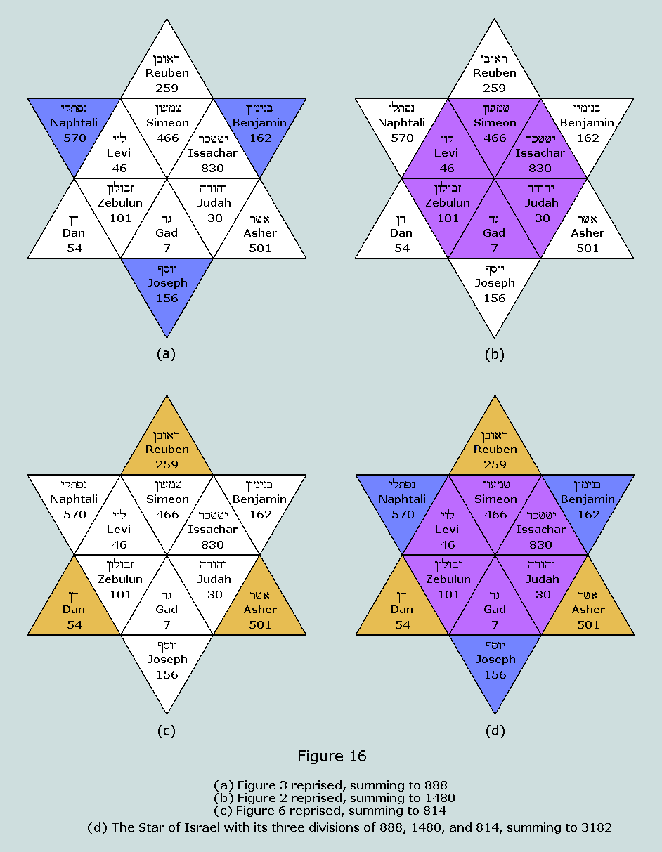 - The sum of the twelve tribes in the Star of Israel is 3182 = 37 x 86